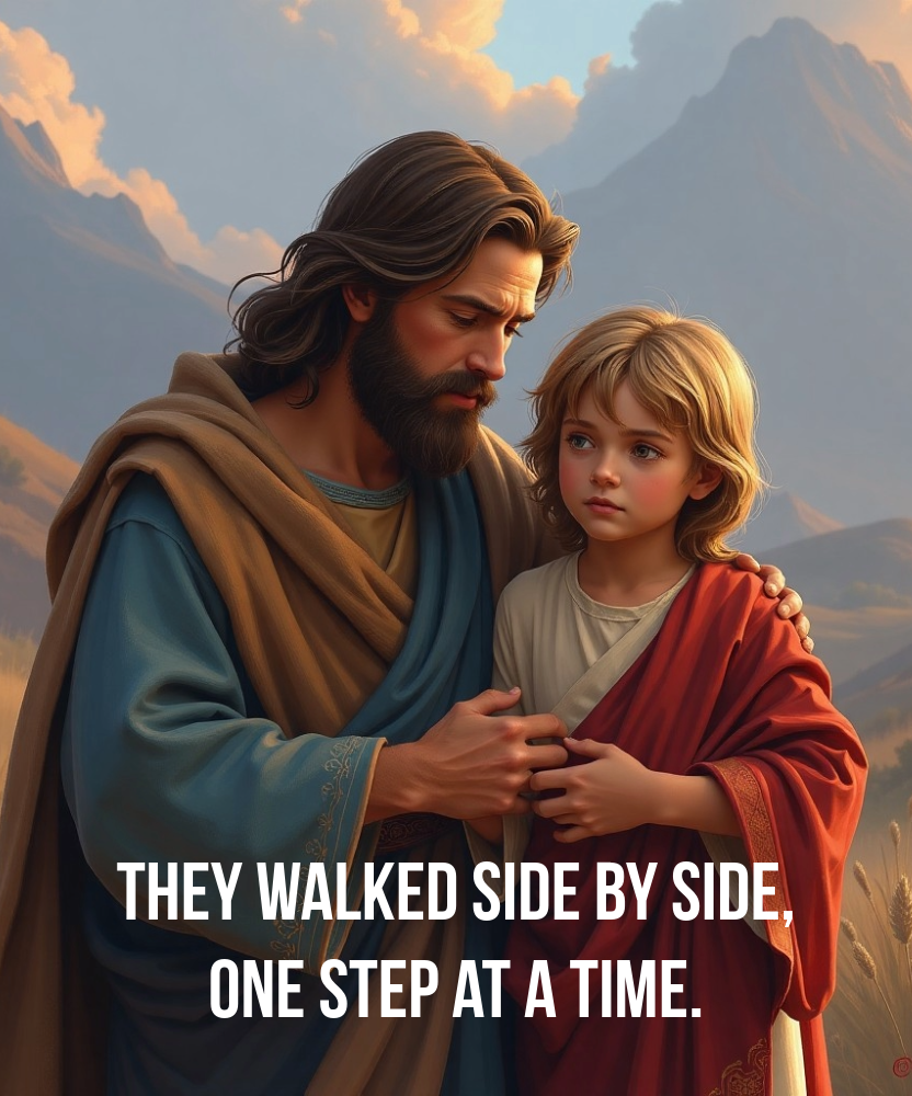 They walk side by side one stepThey walked side by side. Held together by heaven.