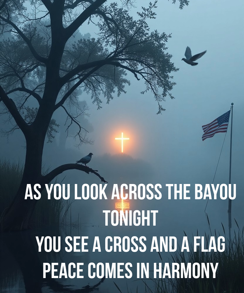As you look across the Bayou"As you look across the bayou tonight… you see a cross and a flag. Peace comes in harmony.”